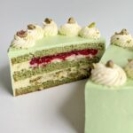 6. Pistáciový dort s malinou