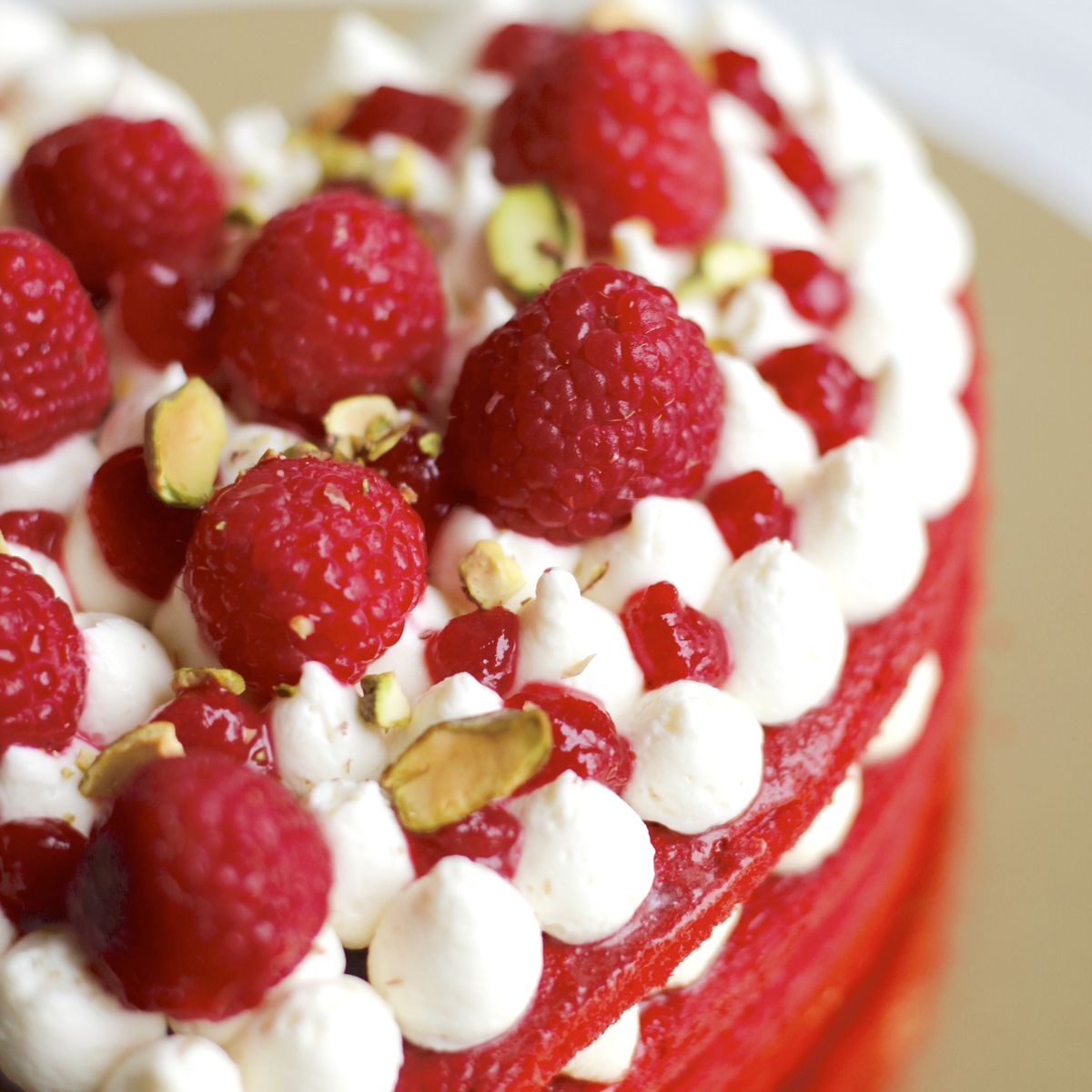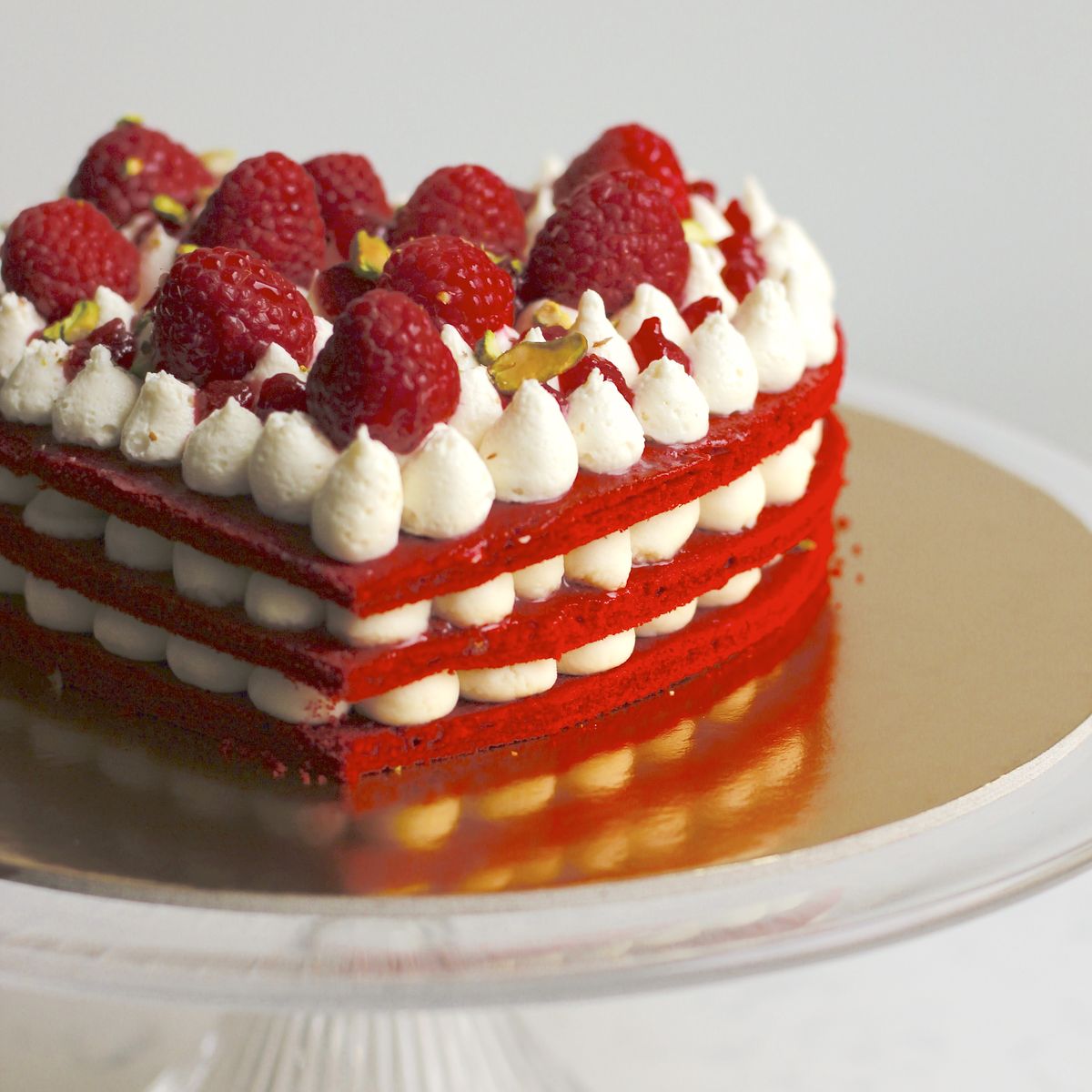 Luxusní dort s ikonickým sametovým korpusem Red Velvet, který se skvěle doplňuje s jemným krémem a osvěžující malinovou vrstvou. Křupavé pistácie dodávají dortu zajímavou texturu a jedinečný chuťový zážitek. Ideální volba pro slavnostní příležitosti!